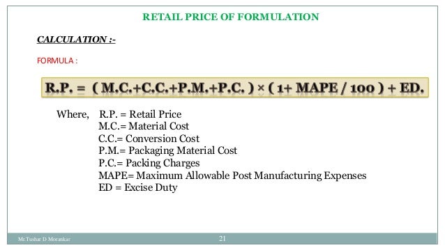 (1) the maximum retail price of scheduled formulations shall be fixed by the manufacturers on the basis of ceiling price notified by the government plus local.