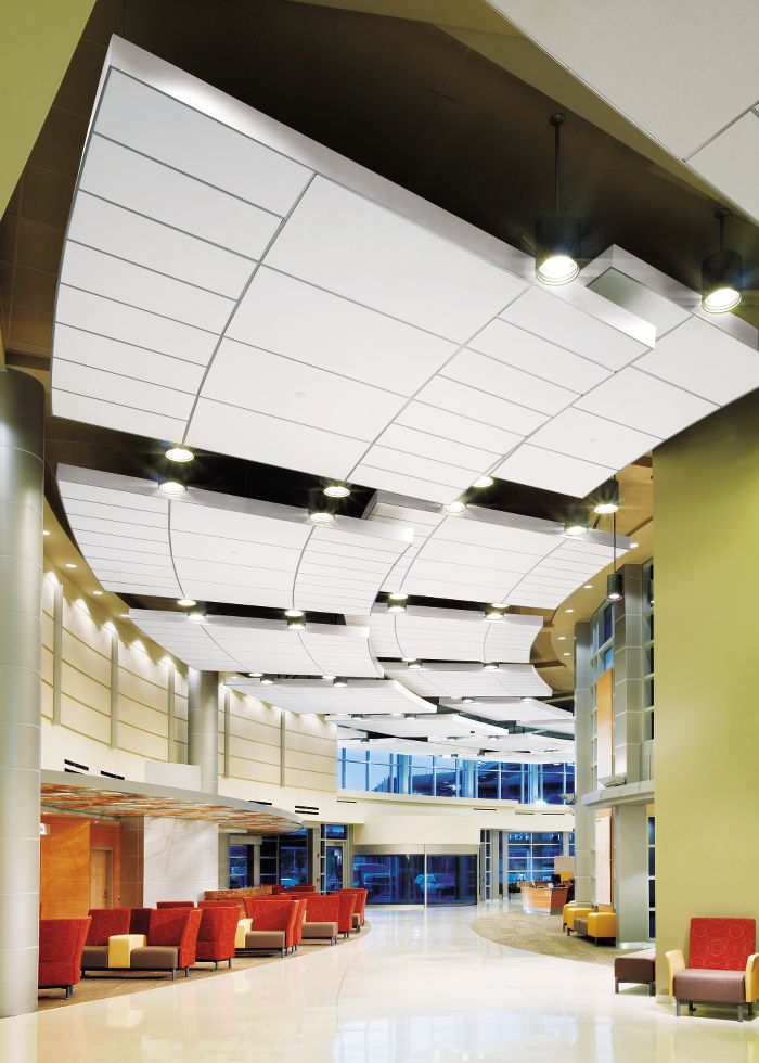 Infusions canopies, clouds, and panels from armstrong ceiling solutions add visual impact to.