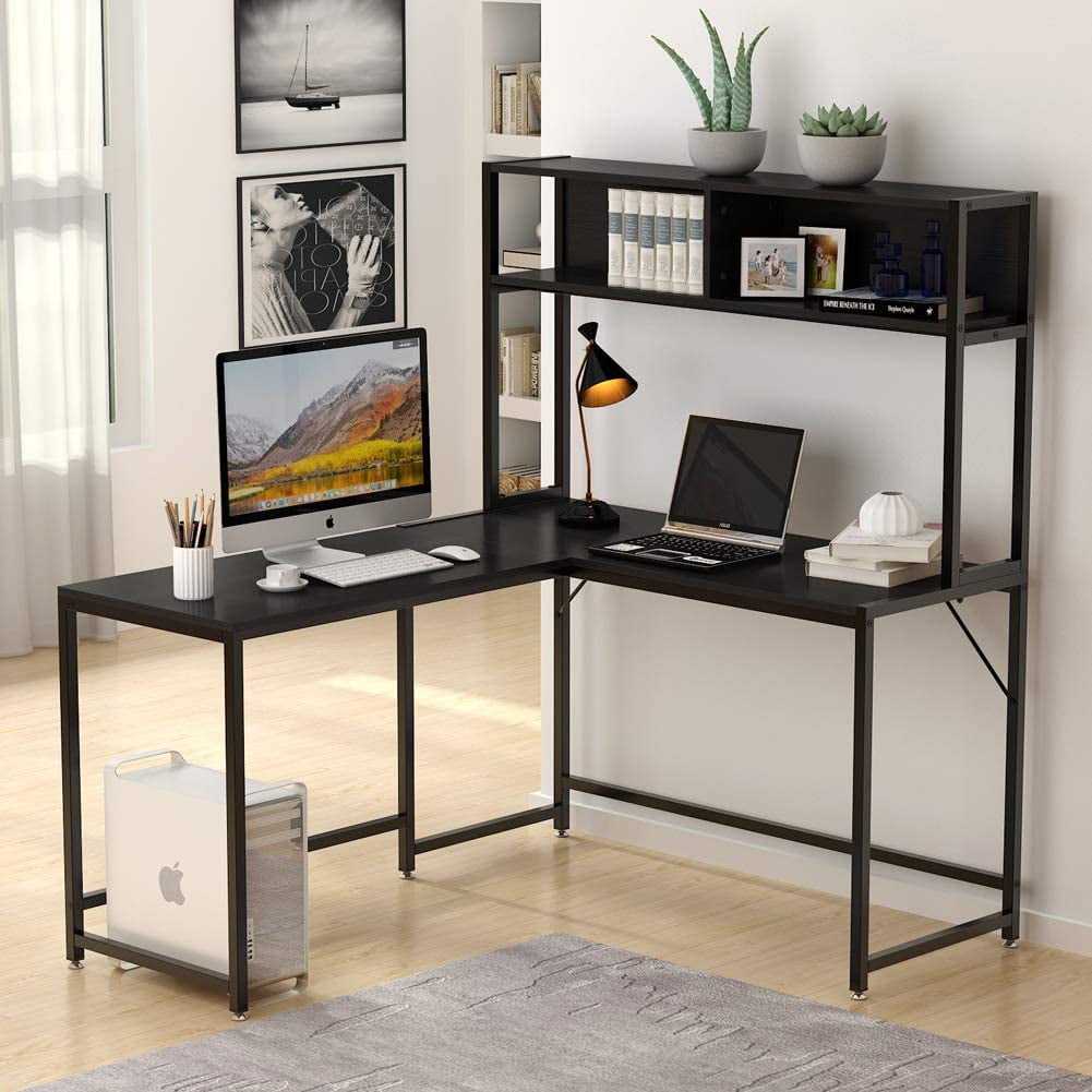 Modern L-shaped Corner Desk with Included Hutch in Black …