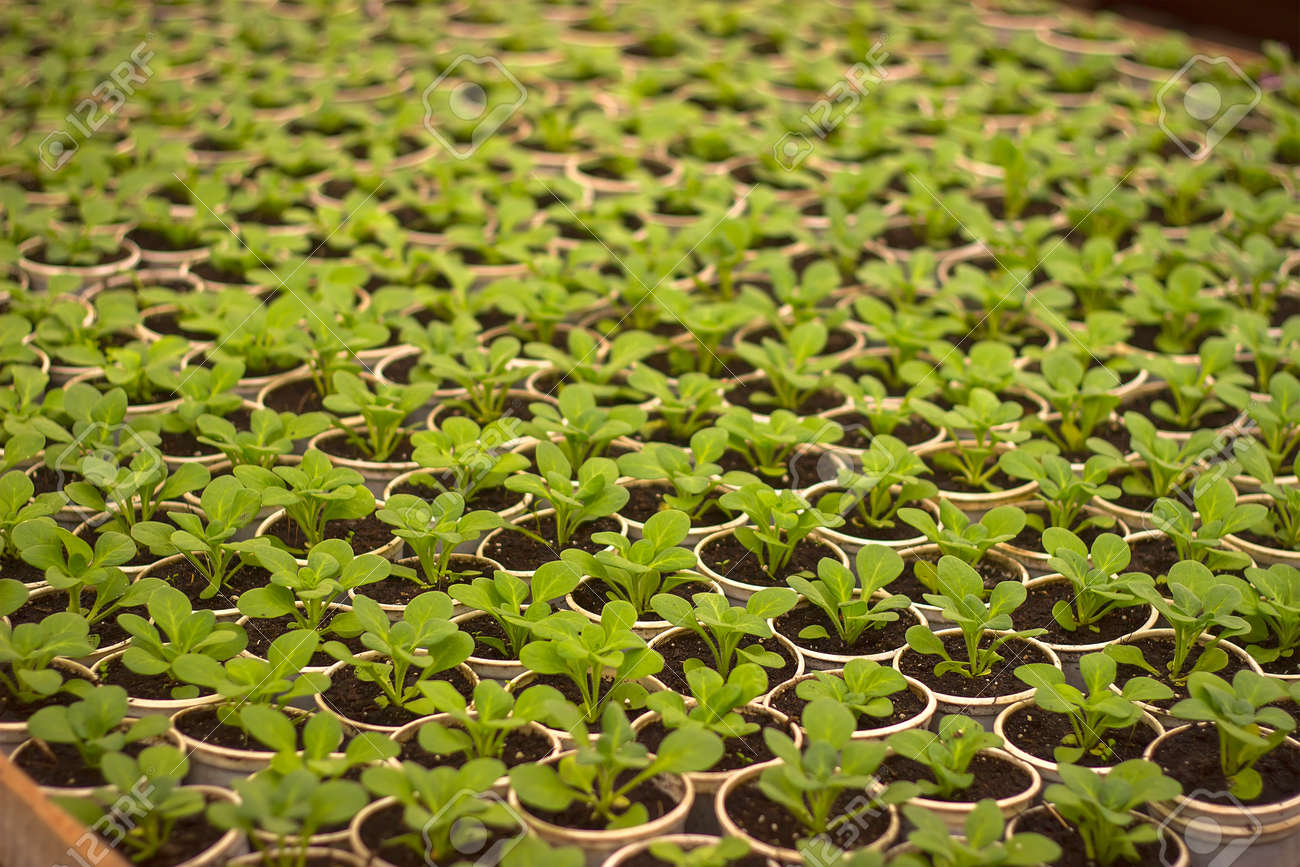 Growing Seedlings In Peat Pots Plants Seeding In Sunlight In