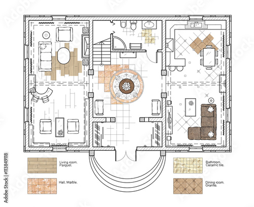 House floor plan with furniture. Have your floor plan with you while shopping to check if there is enough room for a new furniture. Floor plans are useful to help design furniture layout wiring systems. It may also include measurements furniture appliances or anything else necessary to the purpose of the plan.
