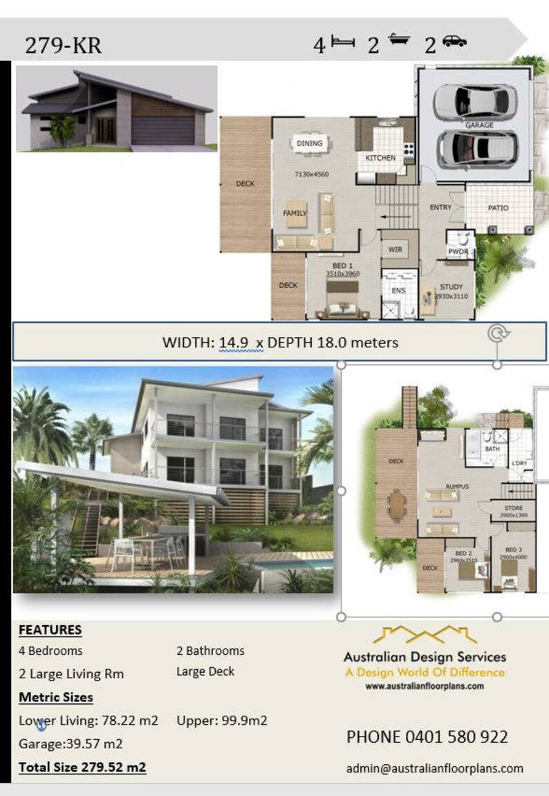 279m2 3000 Sq Feet 4 Bedrooms Home Plan 4 Bed 4 Bedroom Double Garage Plans Modern 4 Bed Home For Sloping Land Blueprint Blueprints